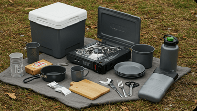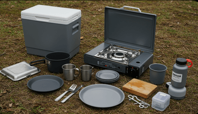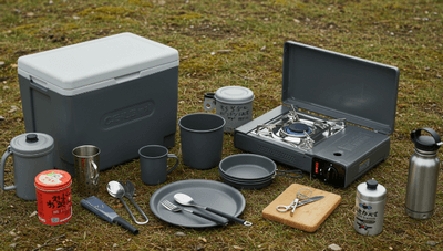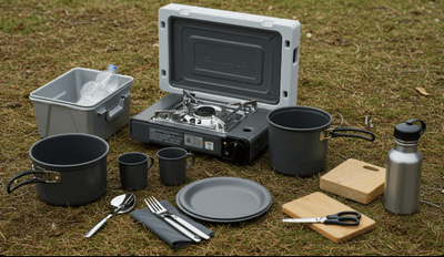 - 코펠 세트/식기: 냄비, 프라이팬, 접시, 컵 등이 포함된 코펠 세트가 편리해요. 일회용품 사용을 줄이는 것도 좋고요.