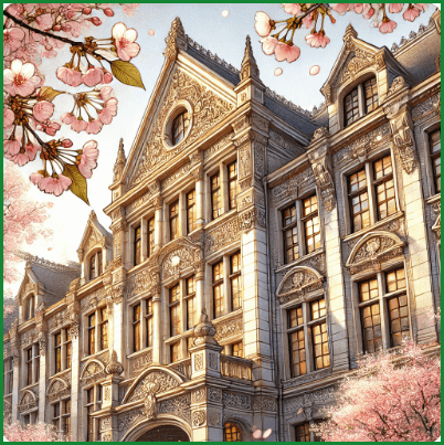 - 유럽풍의 건축물과 벚꽃이 어우러져 이국적인 분위기를 자아냅니다.